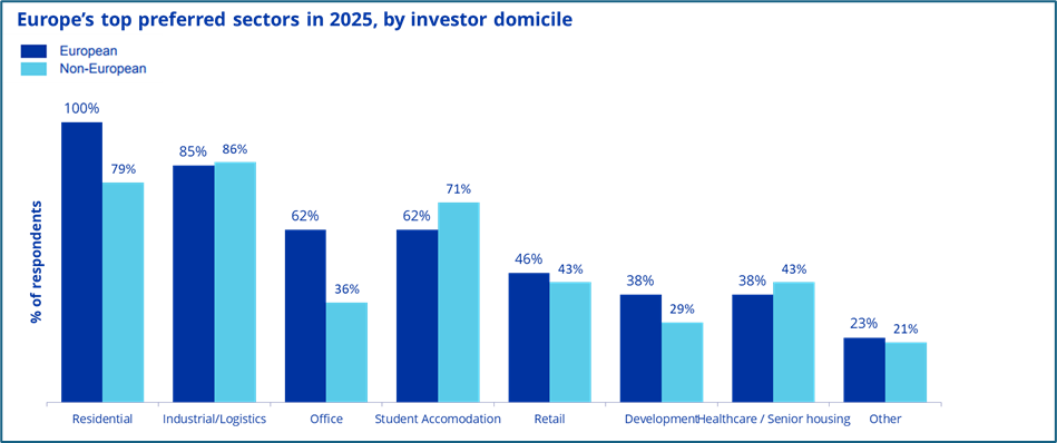 The Living sector, and in particular residential, is not just growing but also capturing investors' attention. According to the 2025 ANREV/INREV/NCREIF Investment Intentions Survey, residential continues to be the most preferred sector in Europe, especially among European investors.